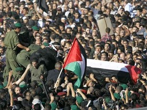 Har man sett en palestinsk ”begravningsceremoni” av någon som dött som ”martyr” (t ex under en självmordsattack mot judar) på TV, så kan det hela mer likna ett upplopp än en värdig ceremoni. Den dödes kista bärs genom ett folkhav på gatorna, folk tjuter och skriker, skanderar hat och hetsar upp varandra för att få till stånd en blodig hämnd. Kaos utbröt till exempel när PLO-ledaren Yasser Arafat begravdes, vilket beskrivs så här av CNN: